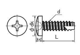■説明:バインド頭となります。相手部材のタップ立てが不要で、ネジ先端に切り込みのミゾが切られているため下穴を削りながらネジをたてて締付けることが出来ます。相手材は鋼板など硬めの材質に適しております。