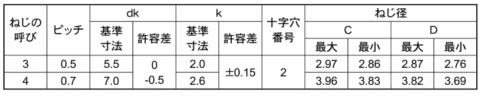 ねじの呼びd M4長さL(mm) 12入数 2000販売価格 (税別) ¥5,4001個あたり(税別) ¥2.7