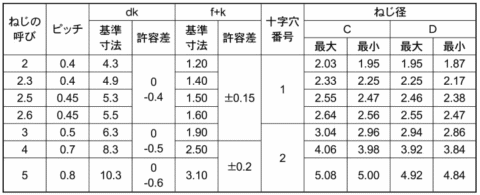 ねじの呼びd 2.3長さL(mm) 6入数 100販売価格 (税別) ¥4001個あたり(税別) ¥4