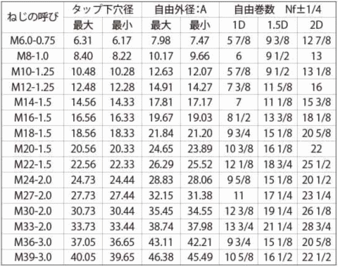 (ねじの呼びd)-(自由巻数Nf)