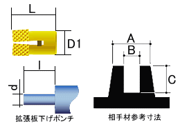 成形後の樹脂に圧入するタイプのナットです。圧入後にポンチで拡張することにより相手材に固着します。