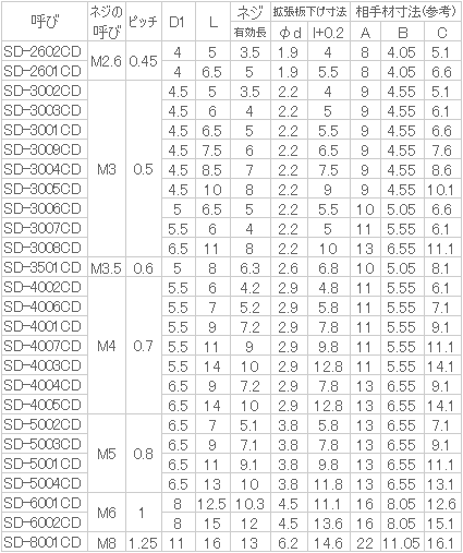呼び SD-5003CD寸法2 -入数 100販売価格 (税別) ¥3,0901個あたり(税別) ¥30.9