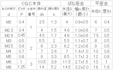 ねじの呼びd M2.6長さL(mm) 8入数 2000販売価格 (税別) ¥8,2001個あたり(税別) ¥4.1