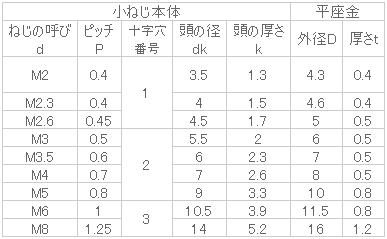 ねじの呼びd M2.5長さL(mm) 8入数 100販売価格 (税別) ¥1,2001個あたり(税別) ¥12