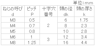 ねじの呼びd M3長さL(mm) 90入数 500販売価格 (税別) ¥4,4001個あたり(税別) ¥8.8