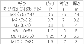 RoHS非対応■説明:四角形のタイプのナットです。ナットを溝などに入れることで締付けの際、通常の六角ナットより回り止めの効果があります。