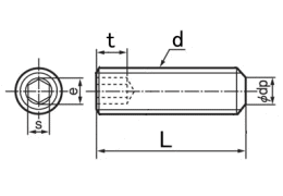 RoHS対応頭部が無く、全ねじの形状となってます。六角穴があいていて六角レンチで締め付けします。主に軸となるシャフト等を固定したり、調整等に使用されています。ねじ部先端は平らで相手材には面で接触する形となります。JISでの正式名は六角穴付き止めねじになりますが六角穴付きボルトと混同してしまいやすい為、ホーローセット、ホーローなどと呼ばれる場合も多いです。