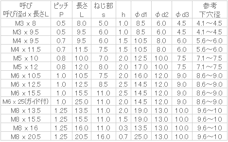 ねじの呼びx長さ M3x9.5寸法2 -入数 800販売価格 (税別) ¥8,6401個あたり(税別) ¥10.8