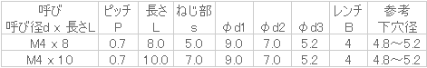 ねじの呼びx長さ M4x8寸法2 -入数 10販売価格 (税別) ¥4001個あたり(税別) ¥40