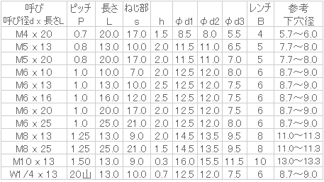 ねじの呼びx長さ M8x20寸法2 -入数 10販売価格 (税別) ¥5001個あたり(税別) ¥50