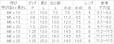 ねじの呼びx長さ M8x13寸法2 -入数 10販売価格 (税別) ¥5001個あたり(税別) ¥50