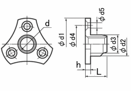 木工用、アジャスター、キャスターなどに取付専用で外周に突起部を付け共回りや緩み、抜けを防止した打込み脚用ナットです。ナットを下穴に打込んだ後、座金部を木ねじで3ヶ所固定する為、バランス面、強度面でも一層強固な接合部が生まれます。
