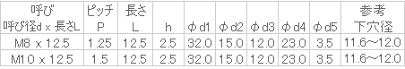 ねじの呼びx長さ M10x12.5寸法2 -入数 1販売価格 (税別) ¥2001個あたり(税別) ¥200