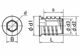 木工用、ツバ付タイプのねじ込み式インサートナットです。外周の螺旋歯は挿入抵抗が少なく、割れを防ぎ無理なく真直ぐねじ込みます。特殊な歯先により、引張り強度、締付けトルクがさらに強力になりました。六角レンチ穴採用の為、自動挿入機を使ってもナットに共回り、抜けが防止できます。