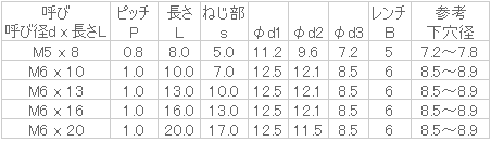 ねじの呼びx長さ M5x8寸法2 -入数 300販売価格 (税別) ¥3,6901個あたり(税別) ¥12.3