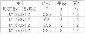 寸法1 M1.6x3x1.2寸法2 -入数 100販売価格 (税別) ¥8001個あたり(税別) ¥8