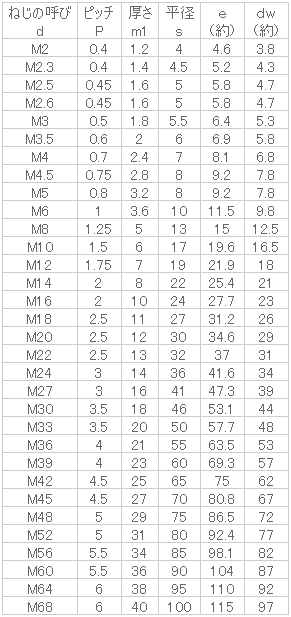 六角ナット1種、2種よりも厚さが薄く両面取りとなっています。コンタルやロックナットと呼ばれる場合もあります。切削加工品となります。