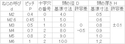 ねじの呼びd M2.5長さL(mm) 6入数 2000販売価格 (税別) ¥20,6001個あたり(税別) ¥10.3