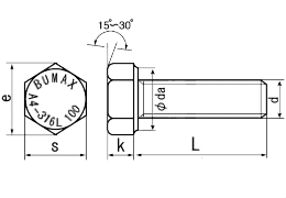 RoHS対応高強度ステンレスボルトBumaxはスウェーデン鋼(A4 316L HiMo)を使用し、熱処理を行わずに圧造、転造加工によって調質鋼のボルトと同等の強度を保証しています