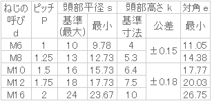 耐力: 900N/mm2(M12以下)、800N/mm2(M16以上)