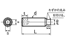 RoHS対応頭部が無く、全ねじの形状となってます。六角穴があいていて六角レンチで締め付けします。主に軸となるシャフト等を固定したり、調整等に使用されています。ねじ部先端はネジ径より細い円筒形の先端となってます。JISでの正式名は六角穴付き止めねじになりますが六角穴付きボルトと混同してしまいやすい為、ホーローセット、ホーローなどと呼ばれる場合も多いです。表面処理は鉄の場合、焼入れ黒染め処理となりますが、こちらの商品はその処理が一般的であることから生地と表記しています。
