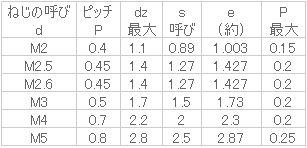 寸法1 M2.5寸法2 6入数 10販売価格 (税別) ¥3001個あたり(税別) ¥30