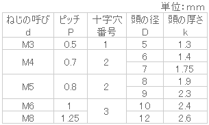 ねじの呼びd M3x12(D5)長さL(mm) -入数 2000販売価格 (税別) ¥7,4001個あたり(税別) ¥3.7