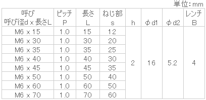 ねじの呼びd M6長さL(mm) 15入数 10販売価格 (税別) ¥4001個あたり(税別) ¥40