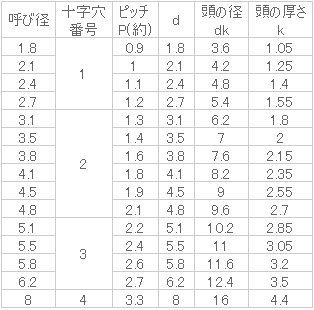 呼び径 1.8長さL(mm) 6.3入数 1000販売価格 (税別) ¥4,0001個あたり(税別) ¥4