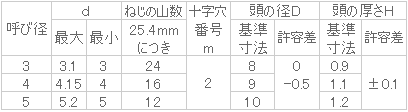 ねじの呼びd 3長さL(mm) 10入数 1000販売価格 (税別) ¥23,1001個あたり(税別) ¥23.1