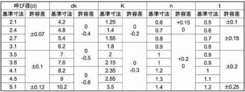 ねじの呼びd 2.1長さL(mm) 10入数 100販売価格 (税別) ¥6,6001個あたり(税別) ¥66
