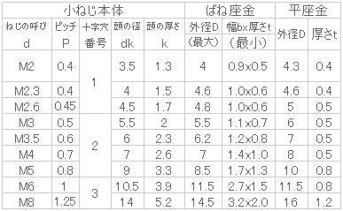 ねじの呼びd M2長さL(mm) 7入数 100販売価格 (税別) ¥7801個あたり(税別) ¥7.8
