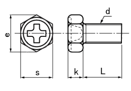 RoHS対応■説明:頭部が六角で十字穴付きのボルト。スパナや十字穴のドライバーなど複数の工具での締付が可能です。