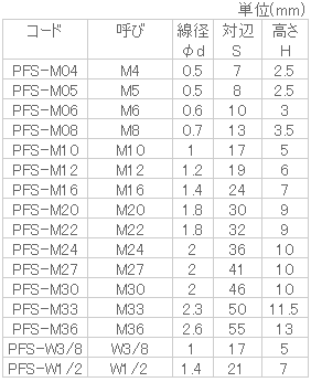 寸法1 M10(PFS-M10)寸法2 -入数 1販売価格 (税別) ¥2001個あたり(税別) ¥200
