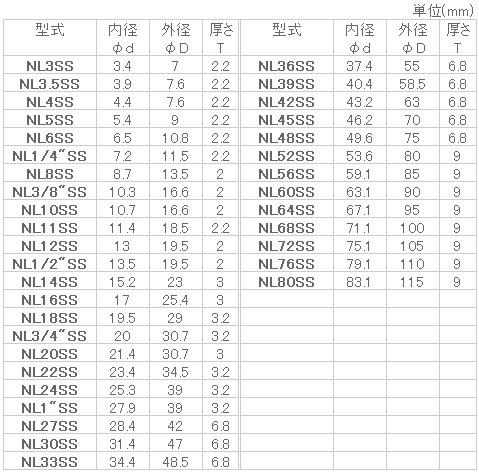 寸法1 NL5SS寸法2 -入数 1販売価格 (税別) ¥4001個あたり(税別) ¥400