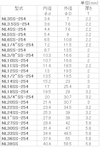 寸法1 NL3.5SS-254寸法2 -入数 1販売価格 (税別) ¥4661個あたり(税別) ¥466