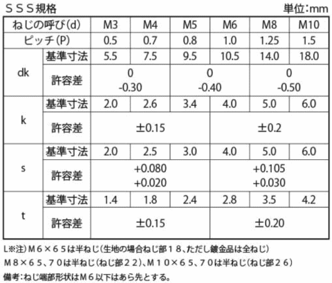 ■規格:SSS-003-1980 SSS規格(日本ソケットスクリュー工業協同組合・団体規格)に基づいています