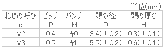 ねじの呼びd M2長さL(mm) 5入数 10販売価格 (税別) ¥3001個あたり(税別) ¥30