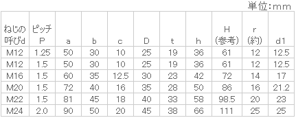 寸法1 M12(P1.25)寸法2 -入数 1販売価格 (税別) ¥4,1541個あたり(税別) ¥4,154