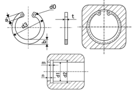 RoHS対応■説明:穴の内径側を円周上に溝を切った穴に入れ、止め輪として使用します。
