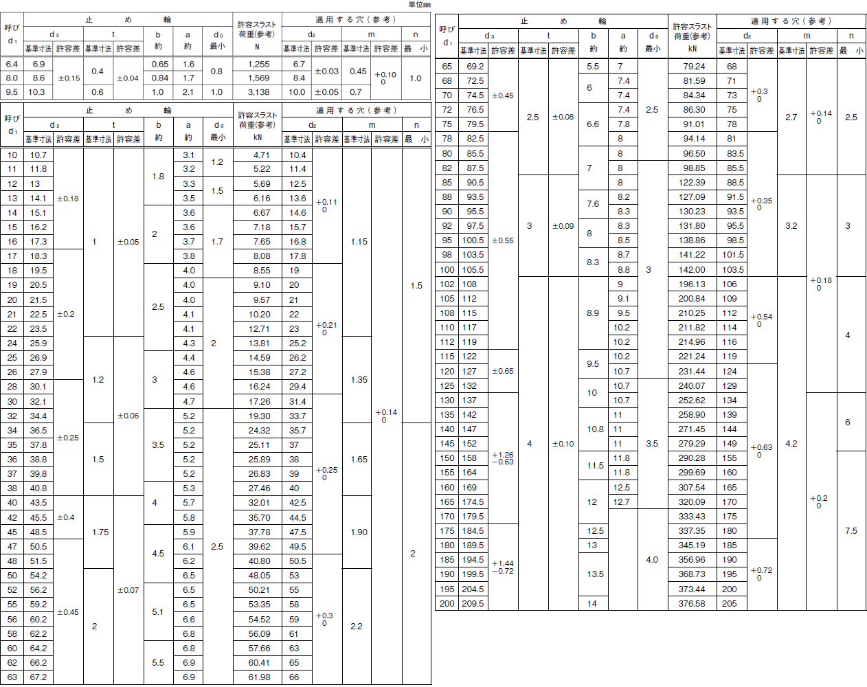 ■備考:1.許容スラスト荷重は止め輪自体のせん断荷重で相手軸の材質及び硬さにより変化します。