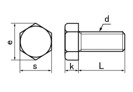 RoHS対応■説明:軽く強く錆びにくい。ボルトと言ったら一般的にはこちらの六角ボルトになります。スパナやレンチを使用して締め付けします。ねじ部は全ねじとなります。
